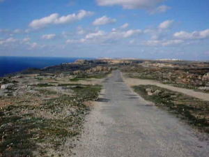 | 南岸に沿っての旅は、こんな荒涼とした狭い道を行くこともあり、シーズンオフは人と殆ど会わないことも。人口密度の高い島といっても、多様な側面があります。 | マルタは全般的に変化に富んだ海岸線が続き、海も様々な表情を見せてくれます。ここは小さな燈台のある、南東部・デリマラ(Delimara)岬の近くです。 | |