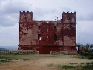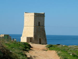 古代遺跡の代表は、ハジャー・イム(Hagar Qim)。ブルー・グロットのすぐ近くにある古代の神殿跡で、紀元前3200〜2500年のものと推定されています。周囲には他にも遺跡が散在しています。 | 1647年に建てられた信号塔は、ゴゾ島に近いメリッハ(Mellieha)の丘の上にあり、ゴゾとの通信塔の役割を負っていたそうです。その色合いから、レッド・タワー(Red Tower)と呼ばれています。 | |